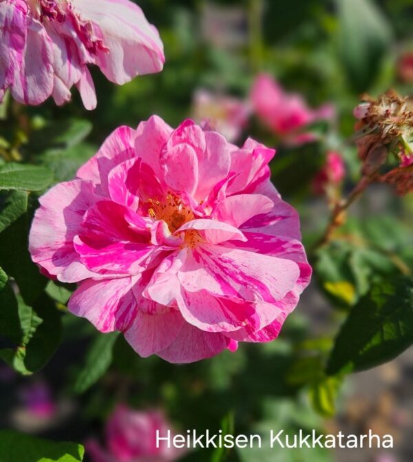 Kirjoapteekkarinruusu on vanhanajan hurmaava ranskanruusu, joka ihastuttaa persoonallisilla puna-valkoraidallisilla kukillaan. Runsaskukkainen ja historiallista tunnelmaa huokuva kirjoapteekkarinruusu sopii täydellisesti romanttisiin puutarhoihin, perennapenkkeihin tai ruusuryhmien katseenvangitsijaksi. Sen ainutlaatuinen väritys tekee jokaisesta kukasta pienen taideteoksen – eikä kahta täysin samanlaista kukkaa juuri näe.