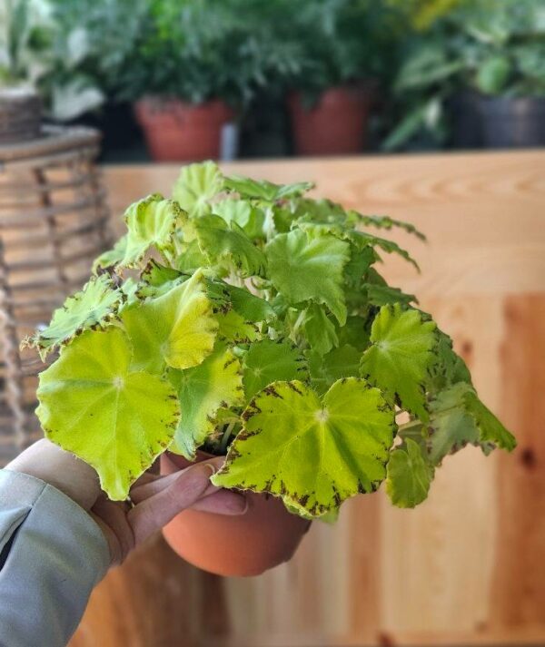 Upean värinen begonia tuo väriä sisustukseen lehdillään.