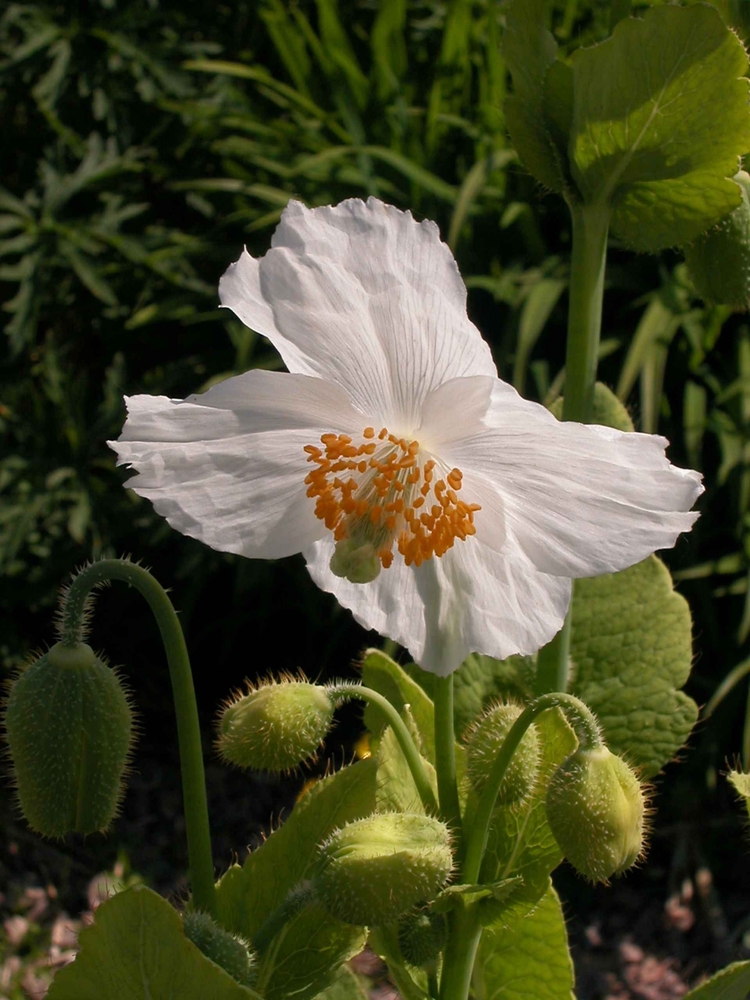 Sinivaleunikon valkoinen muunnos. Sinivaleunikko on harvinainen ja vaikuttava perenna, jonka valkoiset kukat avautuvat keskikesällä ja tuovat puutarhaan lähes satumaisen tunnelman. Tämä Tiibetin vuoristosta kotoisin oleva kasvi erottuu muista perennoista ainutlaatuisella värillään ja herkällä olemuksellaan.